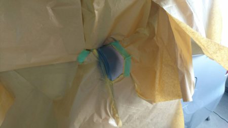 まず、凹みやキズの部分の塗装をペーパーでキレイに削ります。