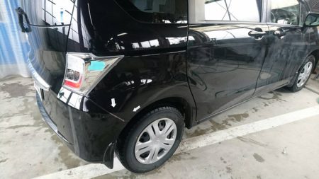 板金塗装修理お任せ下さい。長井市からリヤバンパーのヘコミ(ホンダ・フリード)