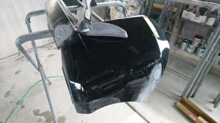 サフェーサーを塗布することで、パテが塗料を吸い込むことを防ぎ、塗装面を滑らかに仕上げることが出来ます。乾燥後、最終的な塗装面を出すために細かいサンドペーパーで研磨します。