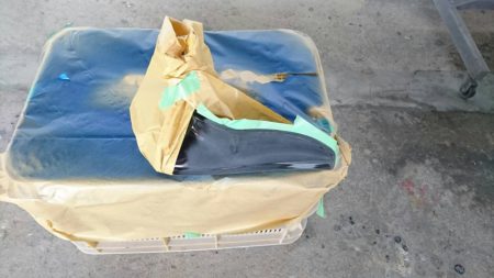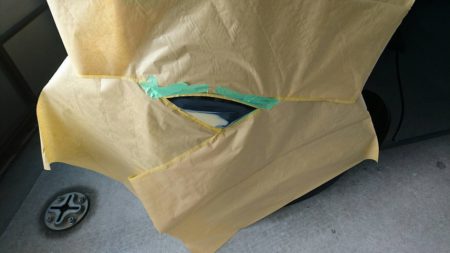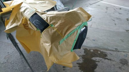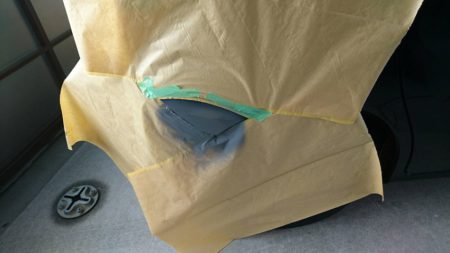 塗料がかかってはいけない部分は、ビニールなどで覆うなどをしマスキングします。
